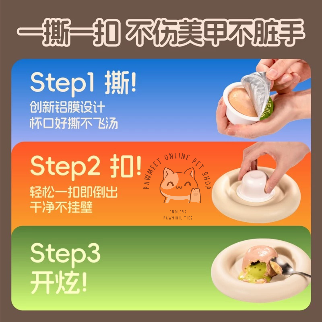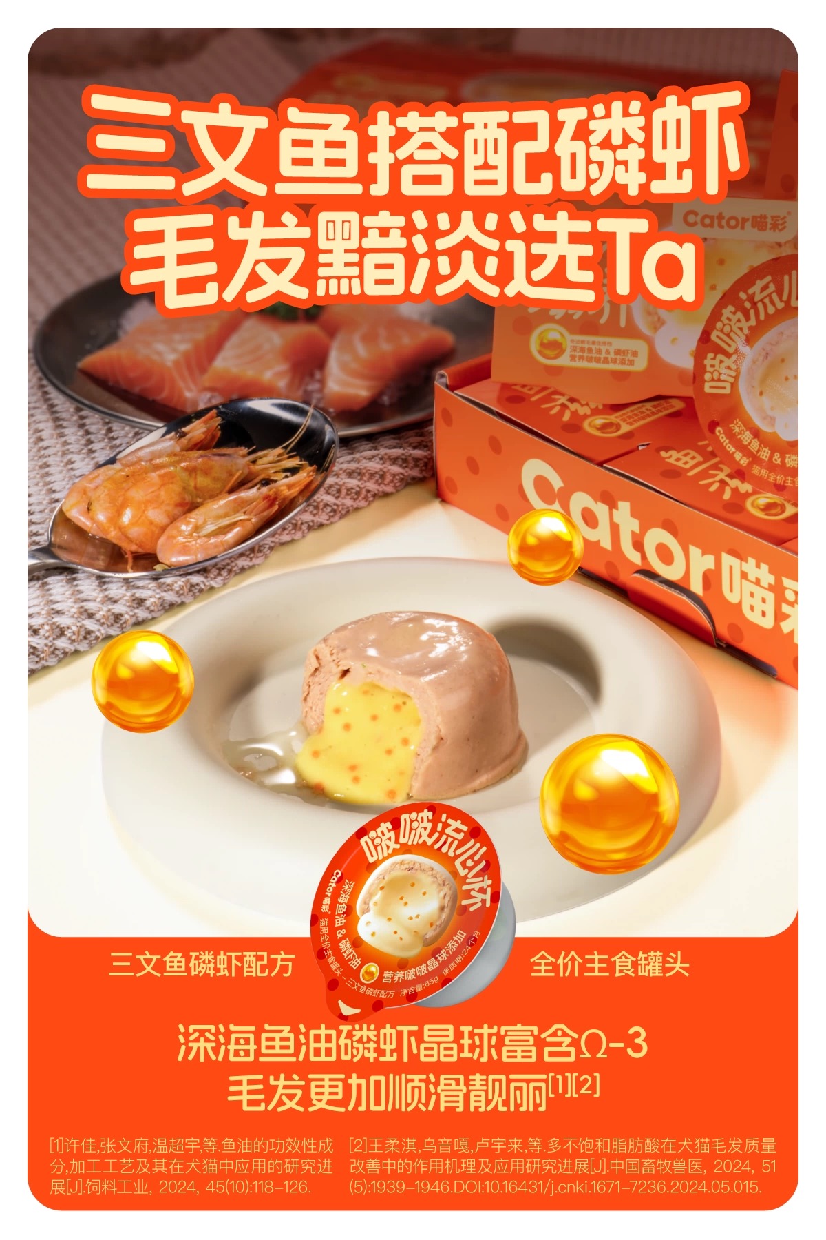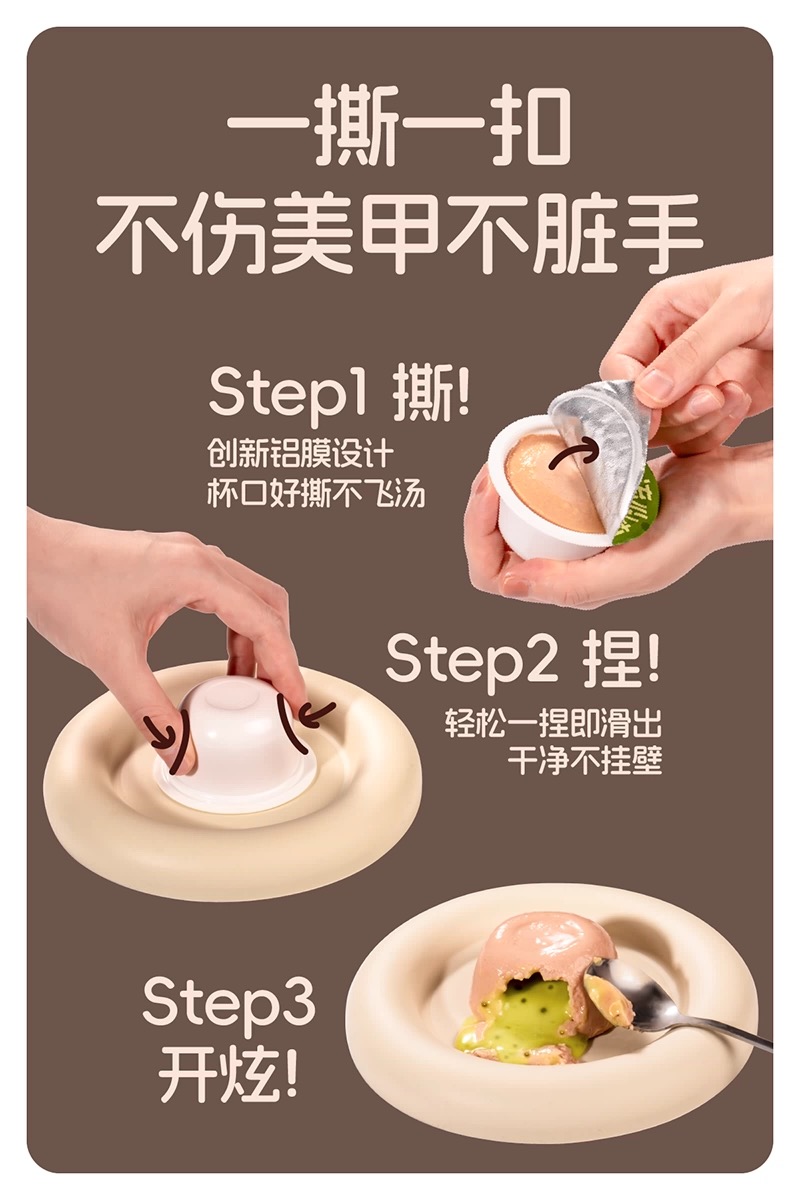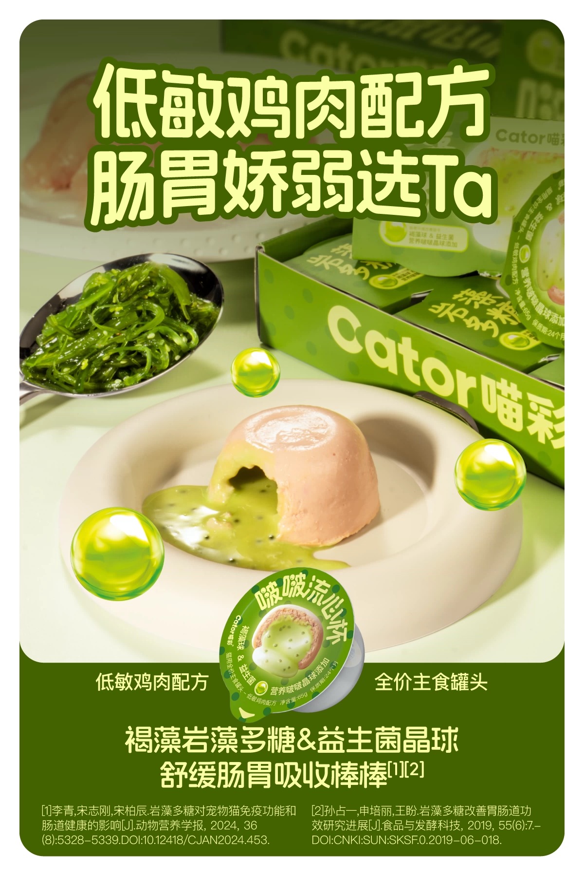 营养成分全部注入晶球中 肠道也能更好吸收 营养拉满一百分💯 健康小猫初养成,只此一枚流心杯~ 🍗低敏鸡肉口味 低敏鸡肉 ➕ 岩藻噗噗晶球 口口爆汁,鲜滑Q弹无负担🍽️ 人,咪再也不会软便拉稀啦~ 🍤三文鱼磷虾口味 深海三文鱼 ➕ 磷虾油噗噗晶球 新鲜三文鱼与磷虾完美融合,美毛的同时鲜美海味交织 铲屎官撸撸撸撸起来,滑滑滑滑出外太空了~ 鸡肉羊初乳配方 精选牧场羊初乳 ➕ 虾青素噗噗晶球 嫩滑鸡肉与浓稠羊初乳黄金搭配,绵密细腻口感🥛 直接吃出一个身体强壮的健康猫猫~ 一口下去全是肉 满满流心,肉肉爆汁,搭配上爆珠~ 那感觉~ 简直就是猫界小泡芙啊~